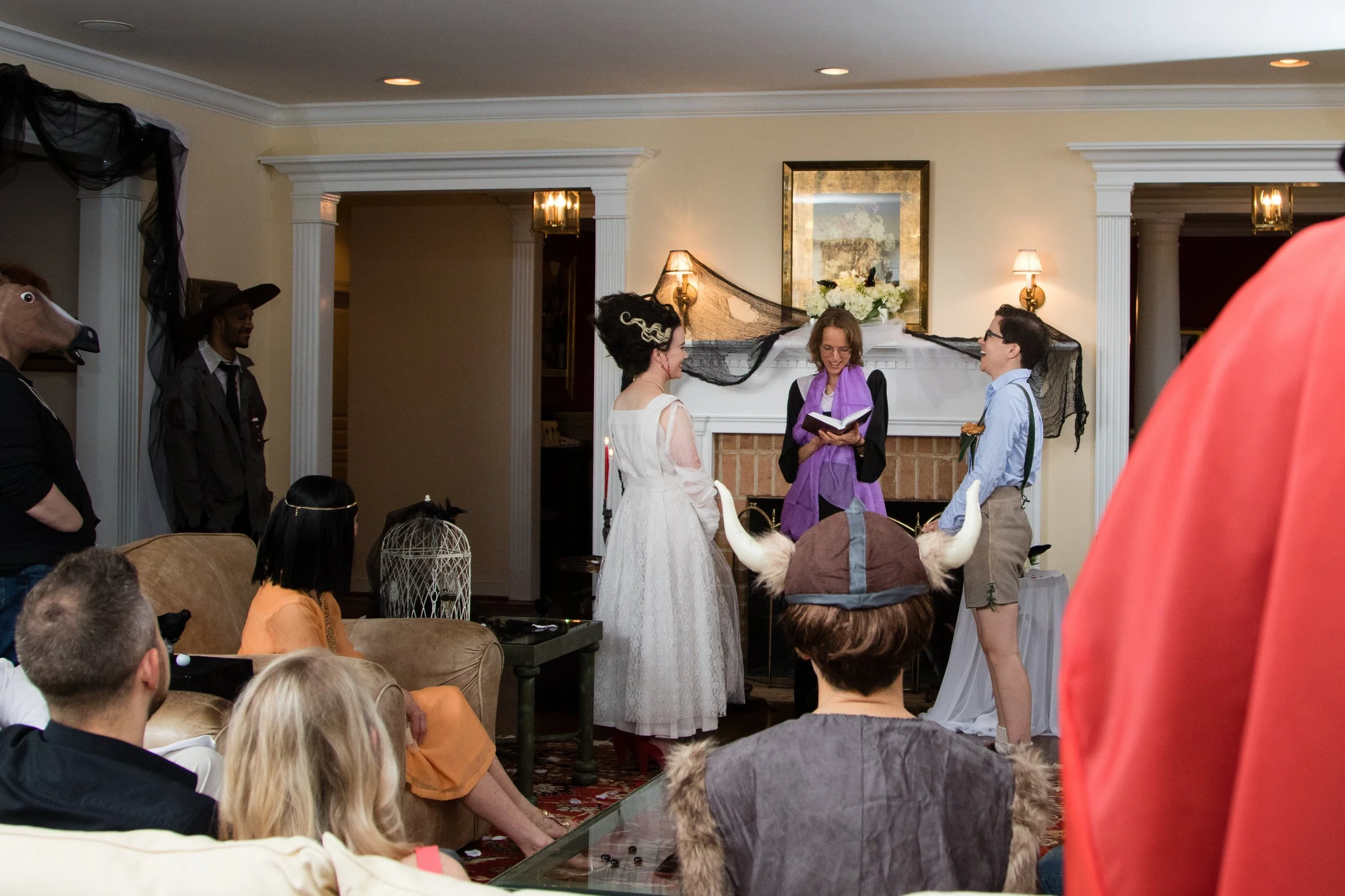 Andrea, being from Austria, wore a German Lederhosen and looked so adorable. I think we can all agree that Jenny is the most gorgeous bride of Frankenstein ever! From the DIY decorations and fabulous costumes to the caricature and delicious craft pizza from Joe Squared, this was one spectacular wedding.